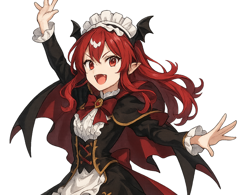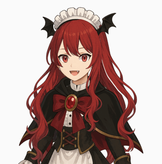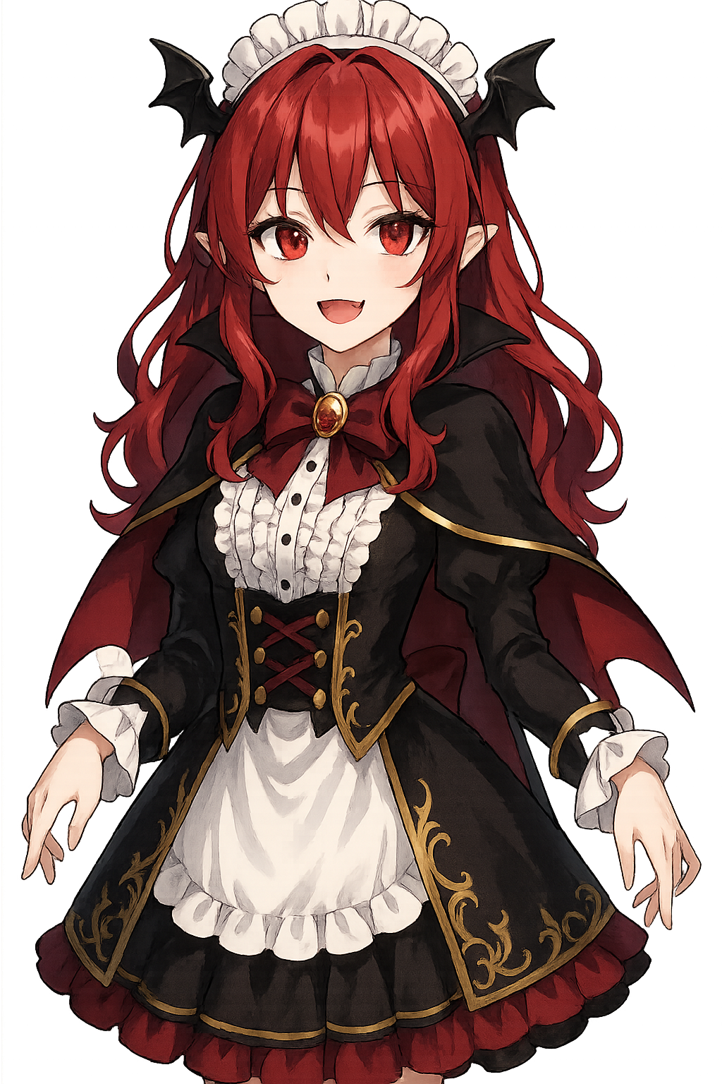 ヴァンパイアとメイドをテーマにVTuberらしい華やかな衣装のキャラクターを作ってください。