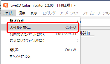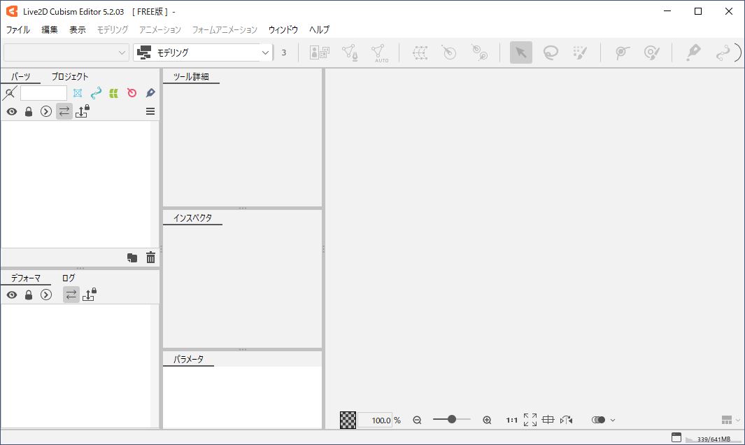 Live2D Cubism Editorを起動すると次のような画面になります。