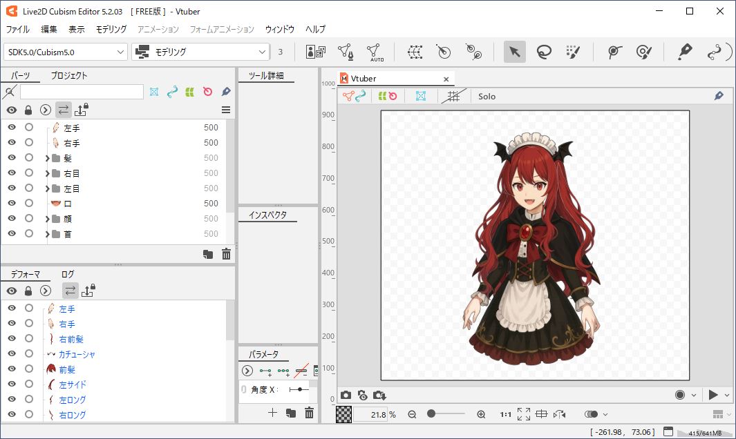 3DCGの作成ではポリゴンでモデルを作り、その上にテクスチャを貼っていくのですが、Live2Dでは逆の手順をやっている感覚です。