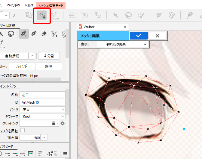 メッシュを編集するためには「メッシュ編集モード」アイコンをクリックしてください。