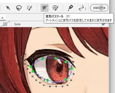次に、変形パスツールを選択し、このまぶた(眼球?)の内側を囲うようにパスを書きます。