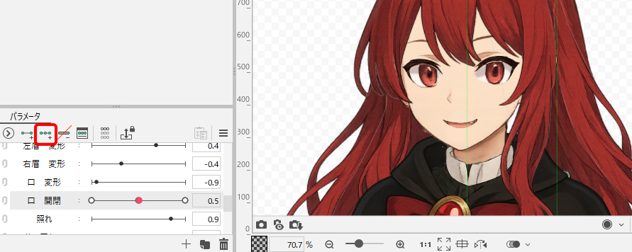 口はデフォルトを開けた口にしたかったので、パラメータは「キーの3点追加」を選択し、中央を閉じた口にしました。