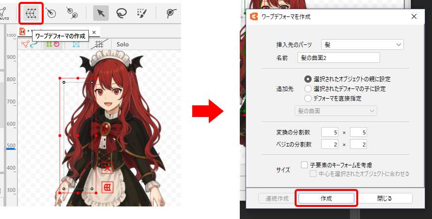 続いて髪が揺れるようにします。 髪の揺れはLive2Dならではの表現ですので、ぜひとも取り入れたい要素です。