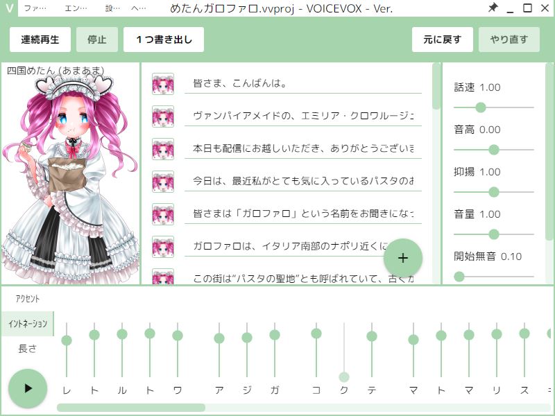 VOICEVOXでは読ませたいテキストを入力するだけでも十分に自然な読み上げをしてくれます。