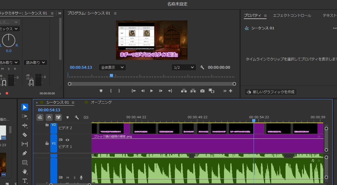 ナレーションが完成したら、一旦キャラクターなしの状態の動画をAdobe Premiere で作成します。