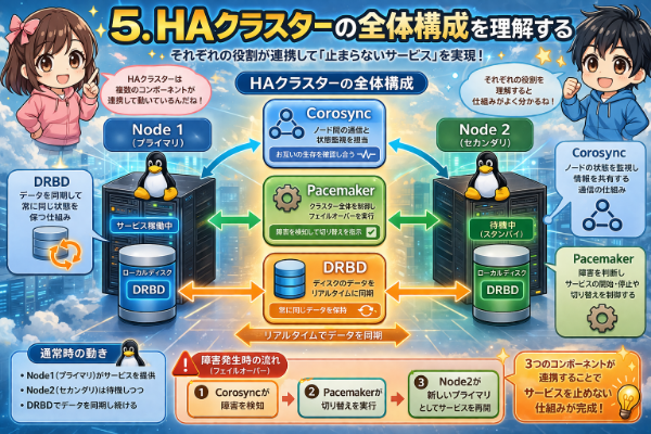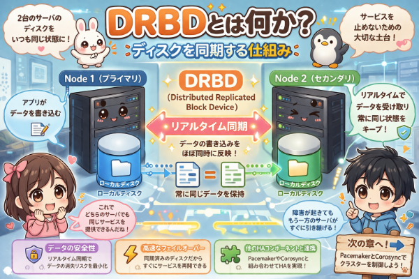 次章では、その中核となる技術である「DRBD」について、初心者にもわかりやすく解説していきます。
