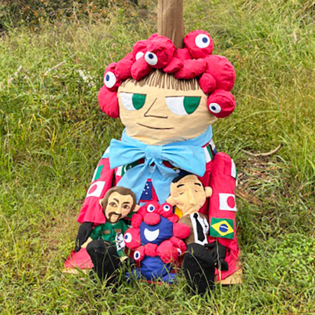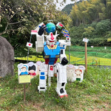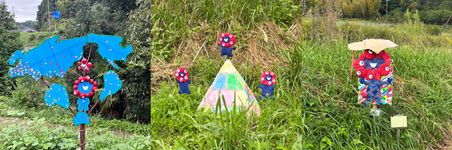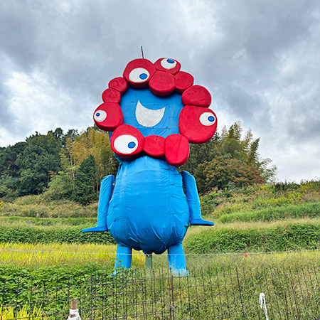 こちらはアフター万博ではないのですが、今年はミャクミャク関連のものが多く、明日香村の今年の「案山子」は、大ミャクミャクでした。