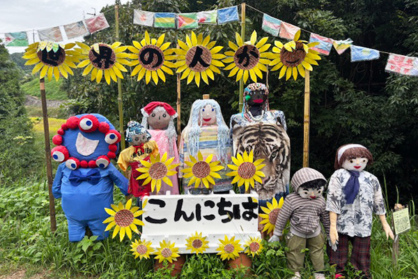 明日香村の「案山子ロード」には、たくさんの案山子が並んでいますが、今年はミャクミャクや万博絡みのものが多かったです。
