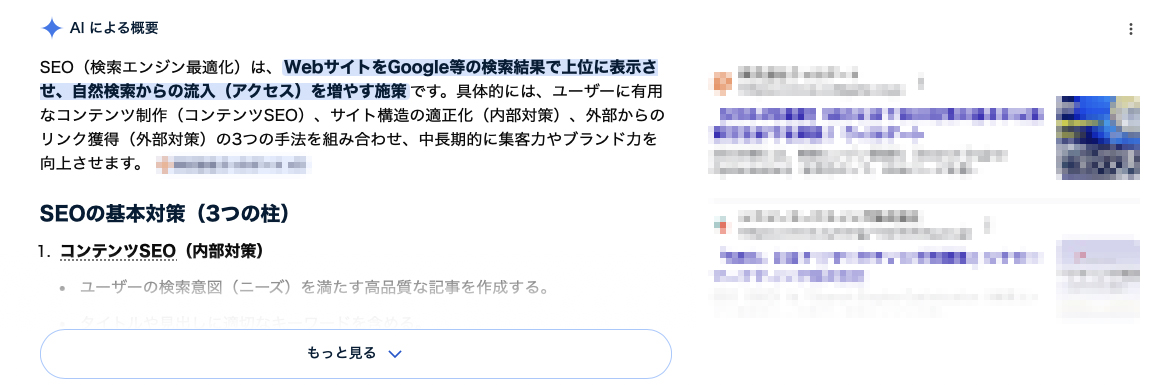 例えば、「SEOとは何か?」という問いに対して、AIが記事の一文をそのまま引用するケースがあります。このとき、定義が簡潔で明確に書かれている記事ほど採用されやすくなります。