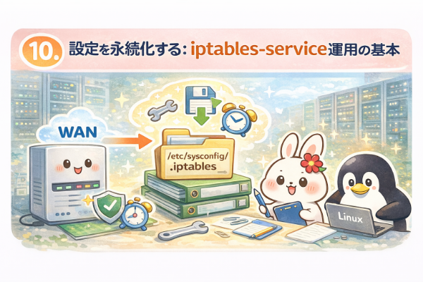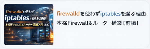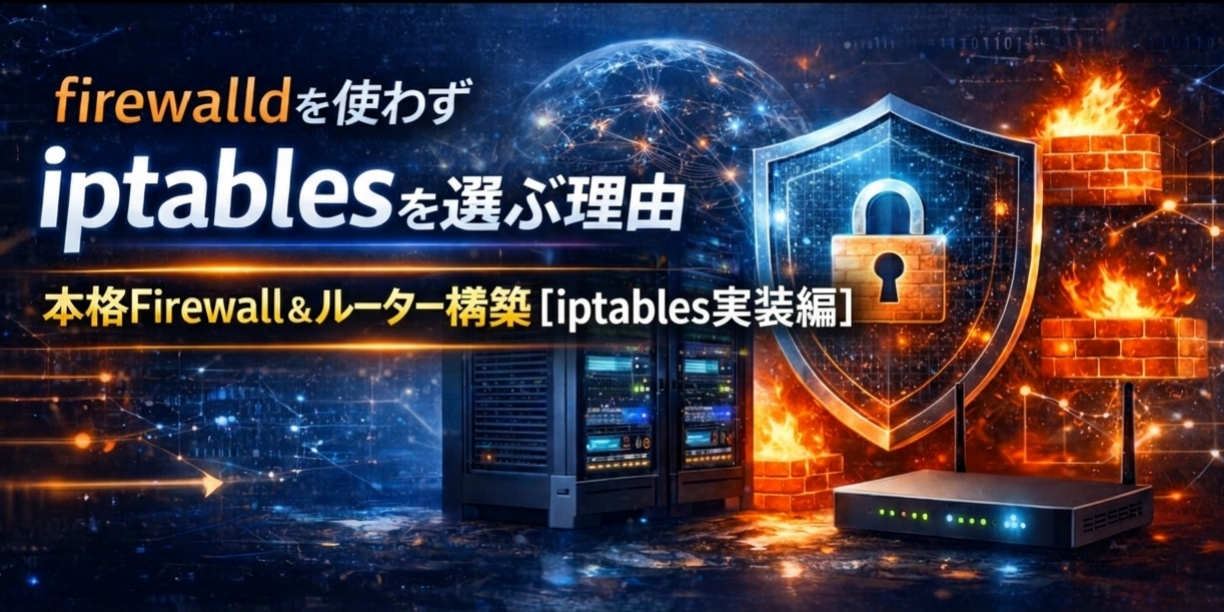「firewalldを使わずiptablesを選ぶ理由」というテーマのもと、Linuxサーバを本格的なFirewall・ルーターとして構築するための考え方と実践方法を段階的に解説してきました。iptablesは古くから存在する仕組みですが、その柔軟性と制御力の高さから、現在でも多くのサーバ環境で利用されている重要な技術です。