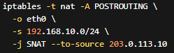 iptablesでは、この処理を POSTROUTINGチェーン で行います。