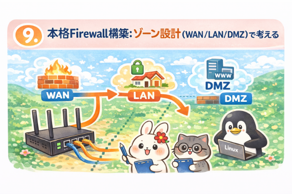 単なるパケットフィルタリングに留まらず、Linuxを本格的なルーター兼Firewallとして運用するために必要な考え方を、段階的に整理していきます。
