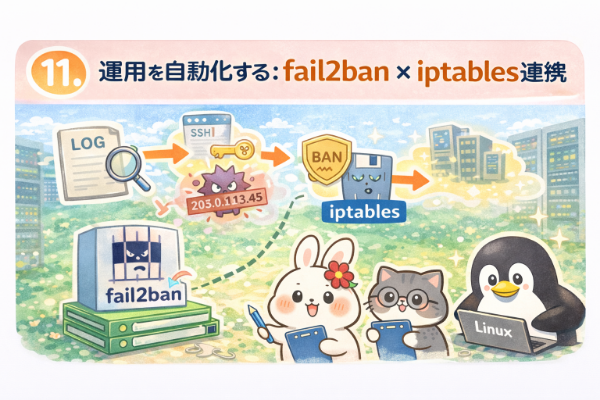 このように、fail2banはiptablesと連携することで自動防御を実現しますが、運用ルールを整備することでより安全に利用できます。