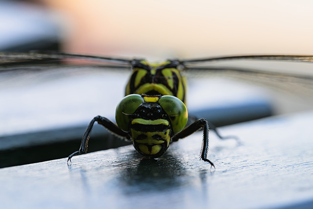 次に挑戦したのは、夏の公園で出会ったオニヤンマ(トンボ)の撮影です。105mmという焦点距離のおかげで、ある程度距離を取りながらも被写体を大きく写せました。近づきすぎて逃げられてしまう心配が少なく、自然な姿を切り取れるのはこのレンズの大きな強みです。昆虫の目の模様や体の細かな毛まで写し取れたときは、「マクロの世界ってこんなに奥深いのか」と改めて感動しました。