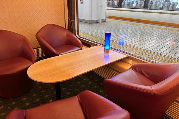中は、高級感漂うゆったりシートや車内販売、ライブラリースペース、オリジナルグッズ等、35分では到底堪能しきれない魅力がいっぱいです。