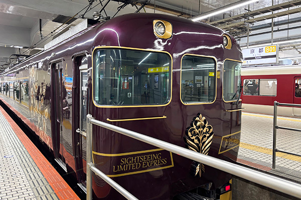 まず、京都で3人を迎え、近鉄観光特急「あおによし」に乗車。