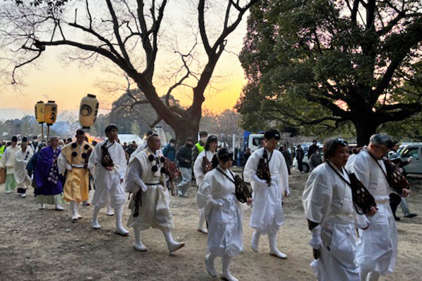 御神火奉戴が終わると、聖火行列が出発します。