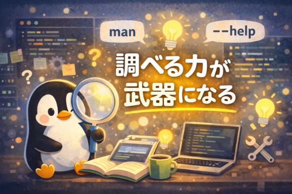 特に初心者のうちは、「調べる=負け」のように感じてしまうことがあります。しかし、Linuxにおいて調べる行為は敗北ではありません。むしろ正解へのプロセスそのものです。manページを読む、公式ドキュメントを見る、他の人の事例を参考にする。そうした積み重ねが、少しずつ自分の引き出しを増やしていきます。