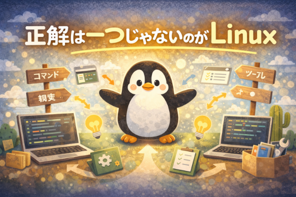 WindowsやGUI中心の環境では、操作手順が決まっていることが多く、それに慣れているとLinuxでも同じ感覚で答えを探してしまいます。しかしLinuxの世界では、やり方は一つではありません。