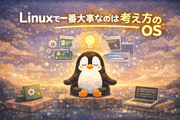 ここまで読んできて、「Linuxって思っていたより怖くないかも」と感じ始めている人もいるかもしれません。コマンドを全部覚えなくてもいい、エラーは敵じゃない、正解は一つじゃない。こうした考え方を知るだけで、Linuxとの距離はぐっと縮まり、そして最後に伝えたいのがLinuxで一番大事なのは“技術”よりも“考え方のOS”だということです。