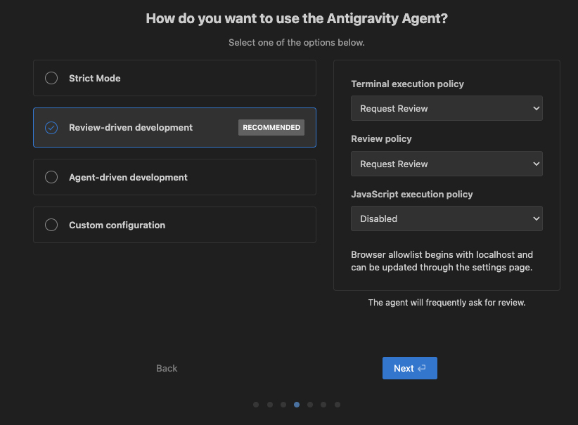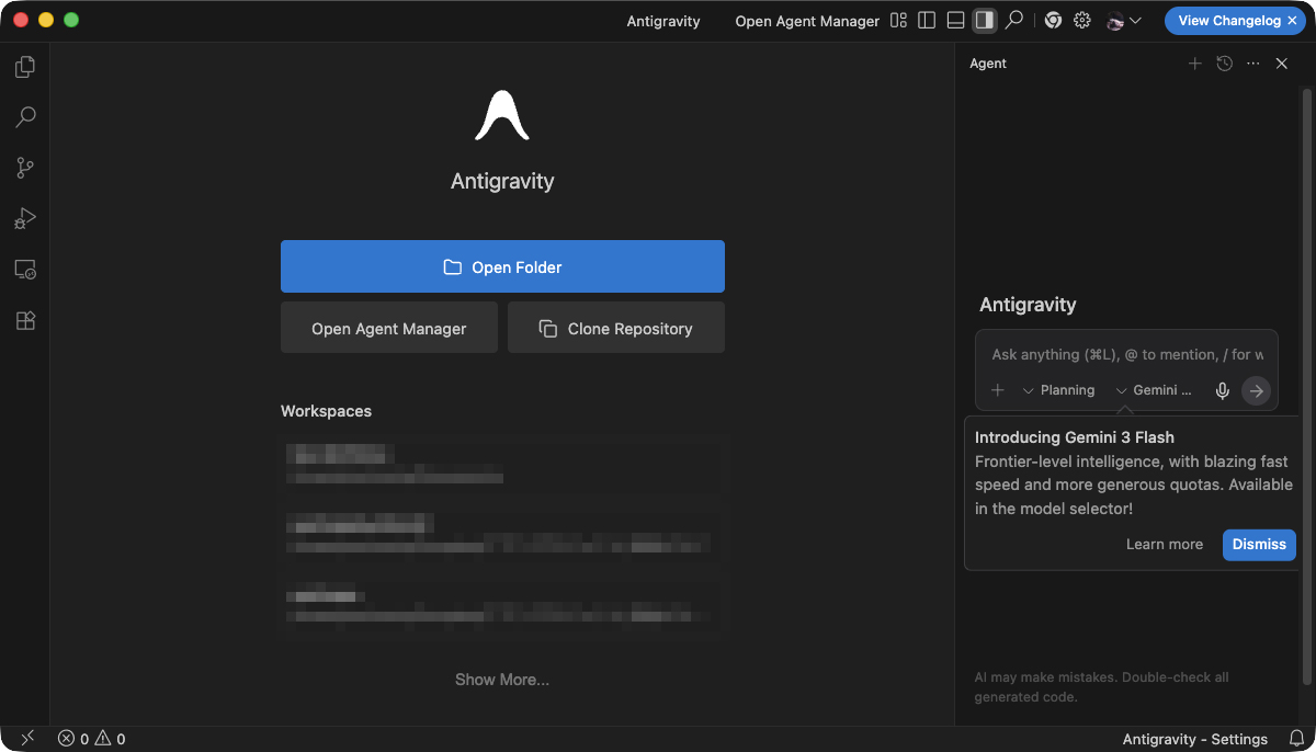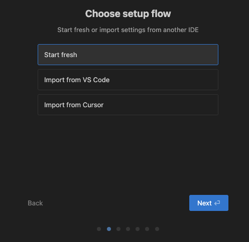 どちらかのエディタを使っていて設定や拡張機能をそのままAntigravityでも使いたい場合は「import from...」を選択してください。