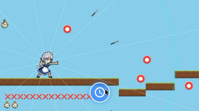 走る咲夜をジャンプさせて少ない被弾数でゴールを目指そう!